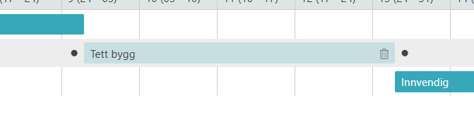 Noen ganger kan det være behov for et opphold mellom oppgavene i planen din, dette kan være f.eks tørketid på fundament eller maling før man kan begynne på neste steg. Dette kan defineres på avhengighetsnivå i fremdriftsplanen. I «Fleksibel» eller «Visuell» modus kan du enkelt opprette dette ved å dra neste oppgave videre frem i tid.