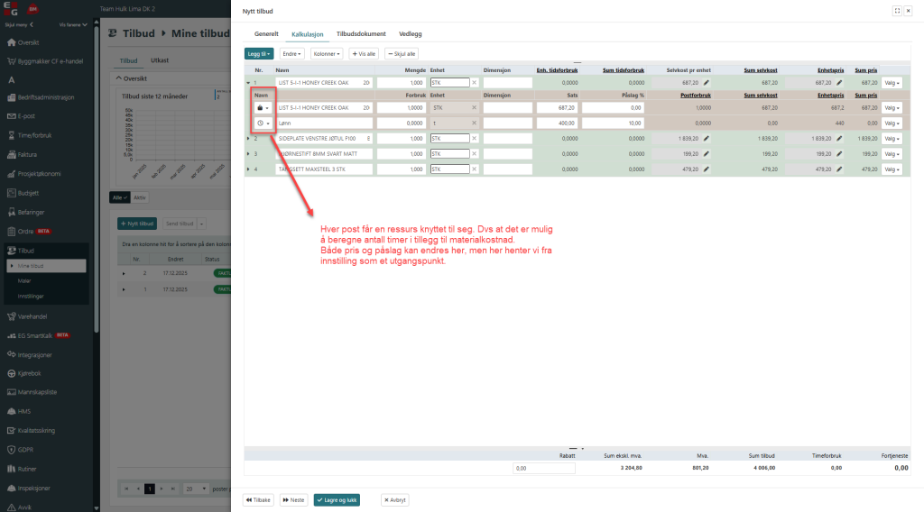 Bygg tilbud enten ved bruk av elementer, poster eller fra vareregisteret. Det siste krever at det er lagt inn et produkter under vareregister, se link: https://hjelp0.holte.no/vareregister-holteportalen/