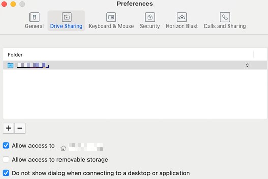Velg «Drive Sharing» / «Fildeling» og huk av for «Allow access to / «Gi tilgang til»