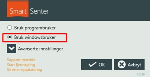 For SmartKalk-brukere: Velg «Bruk windowsbruker* og trykk OK