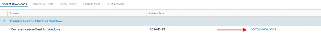 Velg Omnissa Horizon Client for Windows og klikk på «GO TO DOWNLOADS»