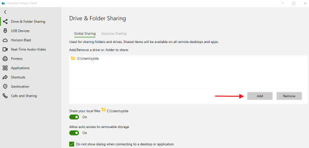 Her viser vi deg hvordan du laster ned og installerer Omnissa Horizon Client på din maskin, i tillegg til hvordan du gir systemet tilgang lokale skrivere og disker: