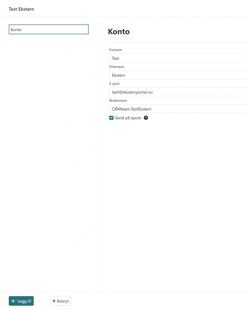 3. Huk av for Send på epost dersom brukeren skal motta innloggingsinformasjon automatisk.
