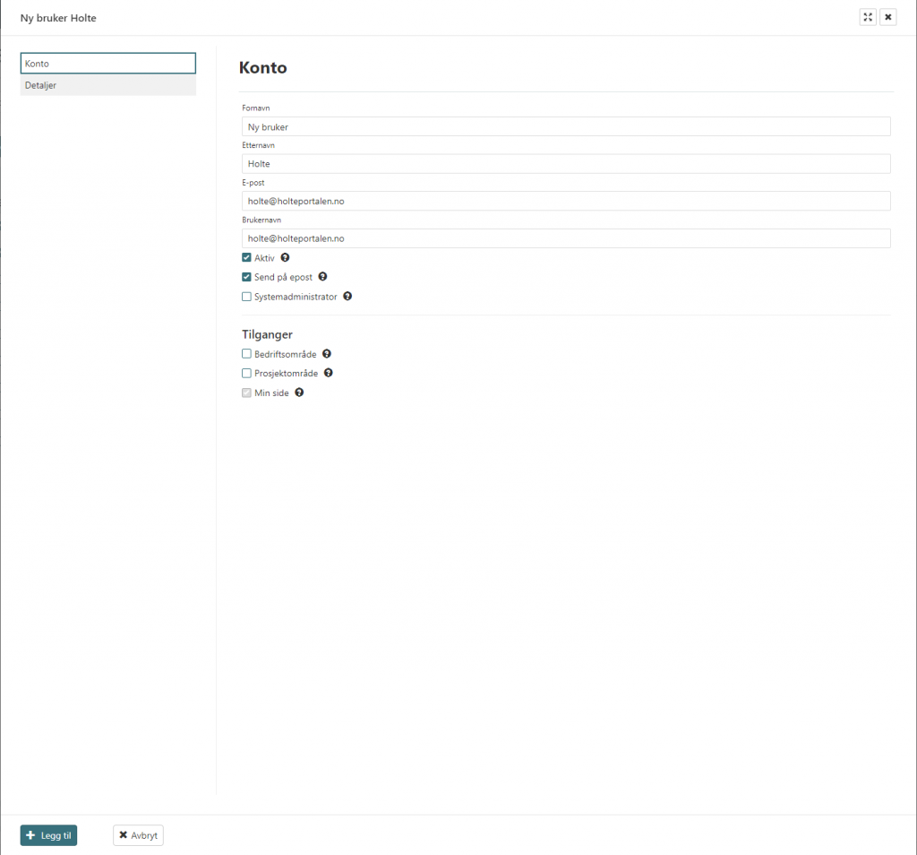 - Trykk på «Legg til» for å lage brukeren.