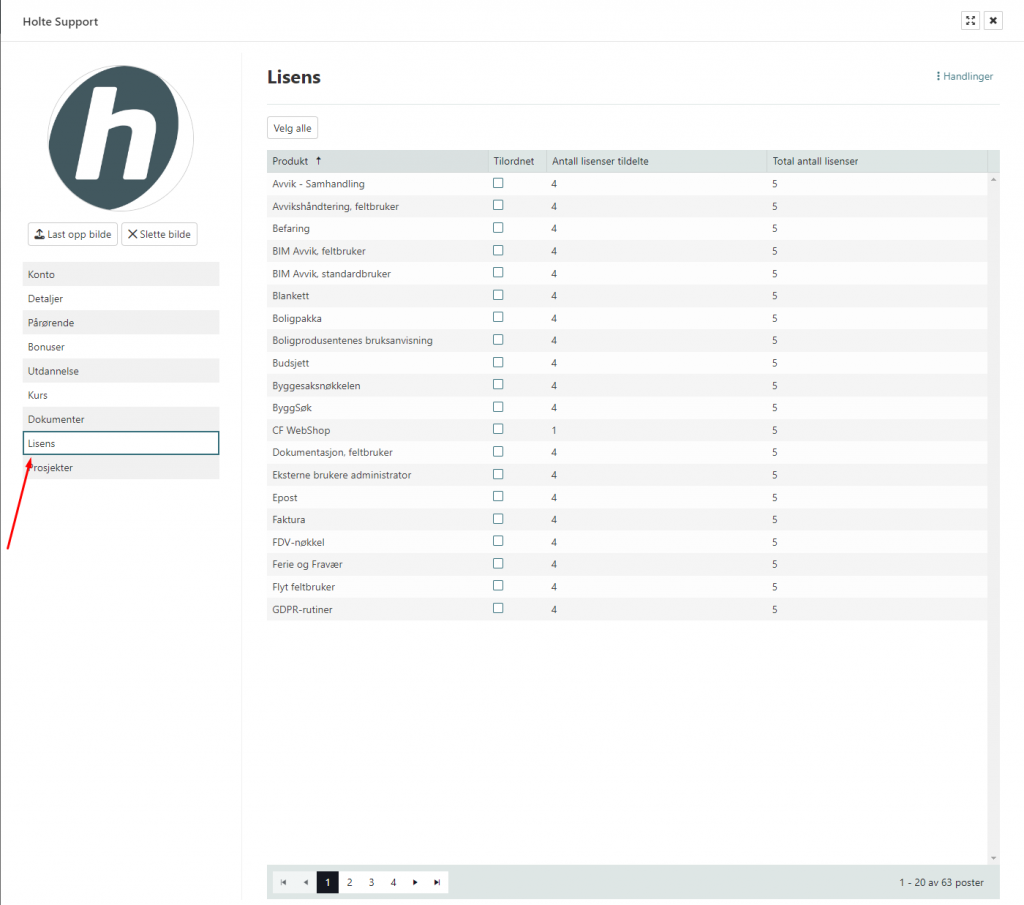 Når du klikker på «Legg til» vil du få et spørsmål om du ønsker å tildele alle aktive lisenser til denne brukeren, dette vil tildele en av hver lisens du har ledig til den aktuelle brukeren. Hvis denne brukeren ikke skal ha alle lisenser, men kun sjekklister og timer f.eks kan du tildele dette via «lisens» fanen etter at du har opprettet brukeren.
