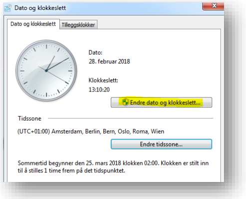 - Høyreklikk på klokka nede i høyre hjørne