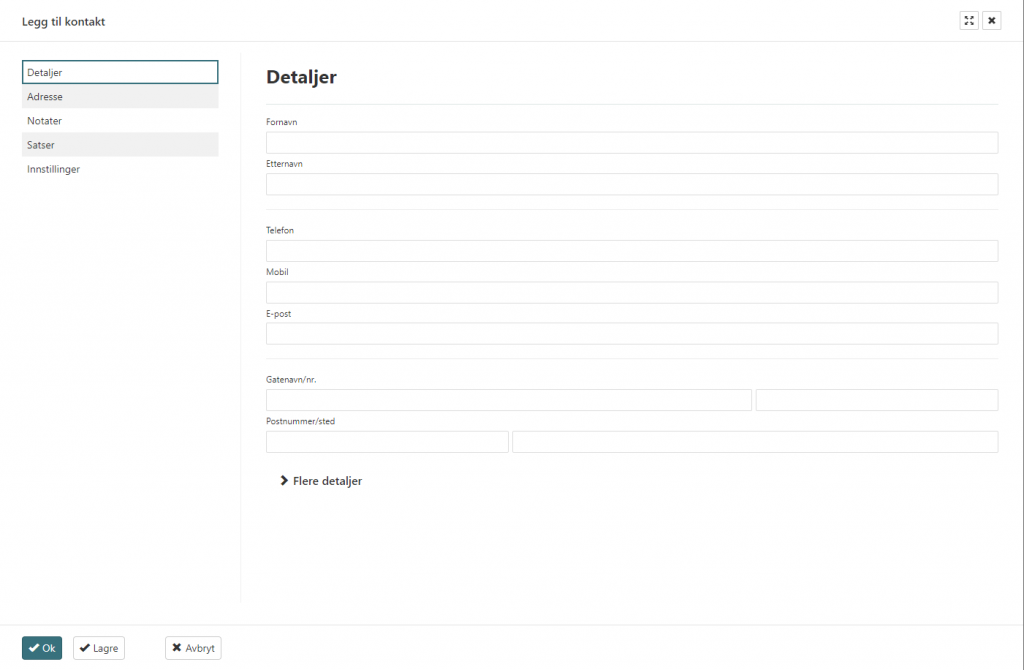 • Fyll inn de grunnleggende kontaktdetaljene, hvis du ønsker kan du utvide listen ved å klikke på «Flere detaljer».
