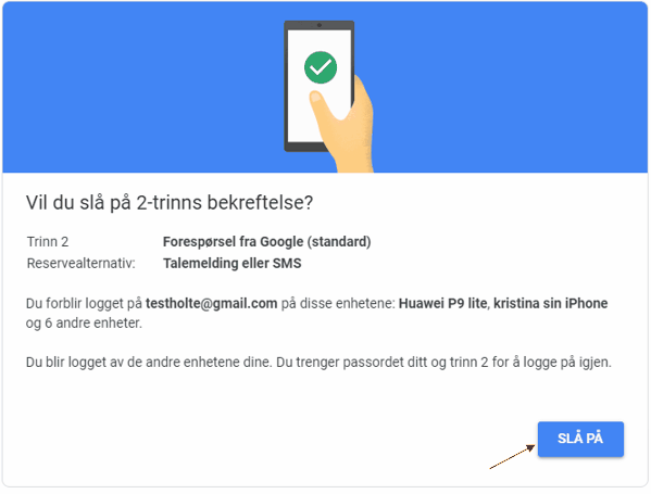 11. Trykk på «Slå på» for å aktivere 2-trinns bekreftelse.