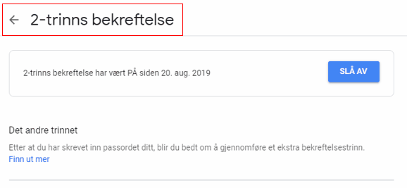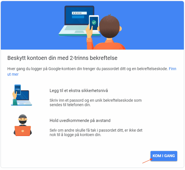 5. Sett opp 2 trinns bekreftelse ved å trykke «Kom i gang».