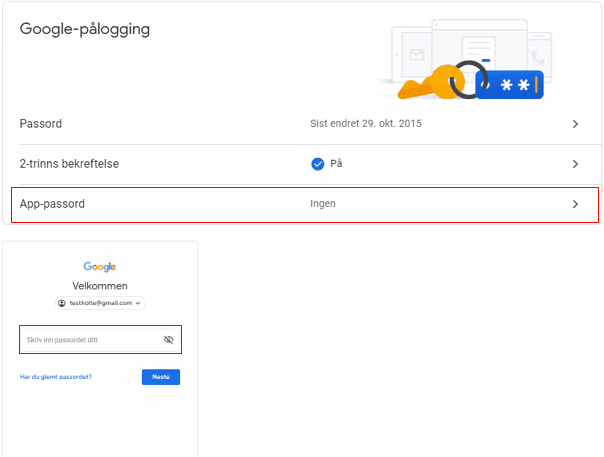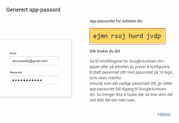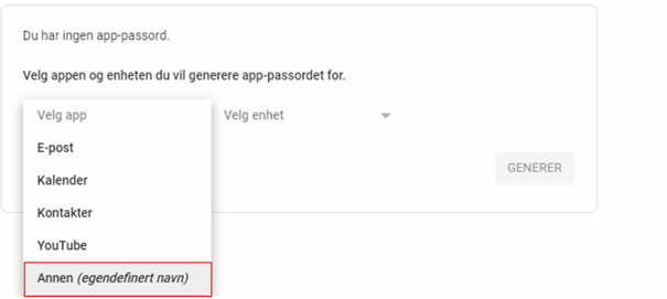 13. Velg Google-pålogging og app passord, skriv inn passord om nødvendig.