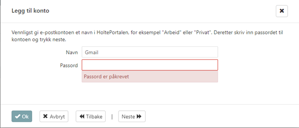17. Bruk det genererte passordet når du kobler opp kontoen i HoltePortalen