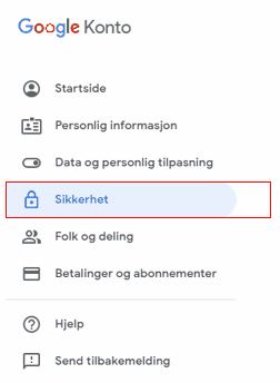 3. Gå inn på menyvalget sikkerhet