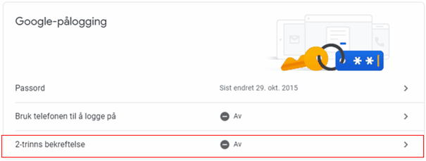 4. Velg Google-pålogging og 2 trinns bekreftelse. (Har du dette satt opp allerede kan du hoppe til steg 13)