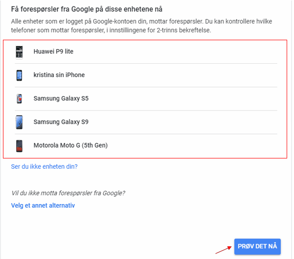 7. Pass på at du ser din egen telefon i listen, deretter trykk «Prøv det nå». Om du ikke ser dette steget kan du hoppe til steg 9