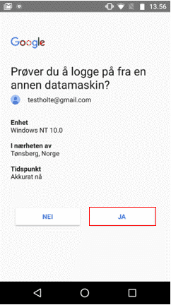 8. Du vil få en beskjed på telefonen din, trykk «Ja» på denne