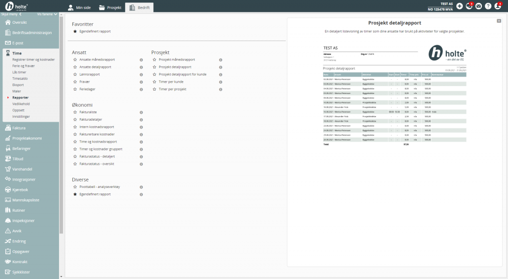 I Holte Time er det mange rapporter å velge mellom, trykk på «i» for å se forhåndsvisning av hver rapport. På denne måten hjelper vi deg å velge riktig rapport.