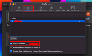 – Velg Drive Sharing og huk av på begge Allow access valgene