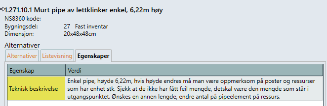 Merk! Denne funksjonaliteten benyttes også for poster og elementer i Holte Prisbase. Dersom det ligger en teknisk beskrivelse på elementet eller posten du henter fra Holte Prisbase vil denne legges inn på intern kommentar. Dette er informasjon om at det kan være en aksjon du må ta ved bruk av elementet eller posten.